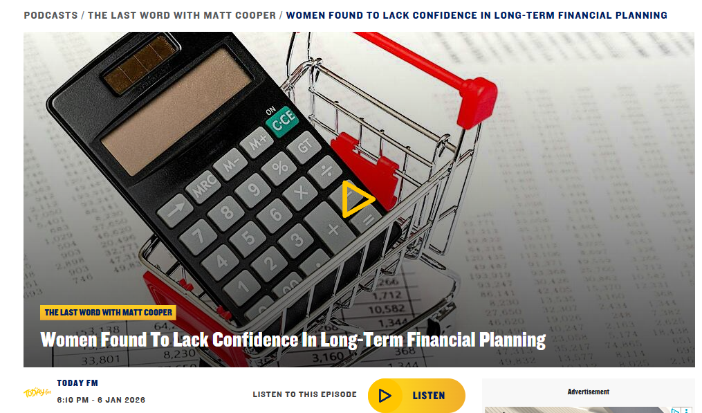 Yesterday, I spoke on The Last Word on Today FM about long term financial planning. We discussed research showing that many women feel less confident when it comes to planning ahead. That lack of confidence often leads to putting things off, even when taking small steps could make a big difference over time. https://www.todayfm.com/podcasts/the-last-word-with-matt-cooper/women-found-to-lack-confidence-in-long-term-financial-planning